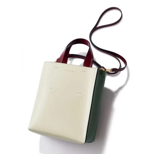 人気の「MUSEO」シリーズからミニサイズが登場。計算された配色と構築的なデザイン、ツヤのあるカーフレザーが高級感を演出。長さが調整できるショルダーストラップはクロスボディにしても素敵。