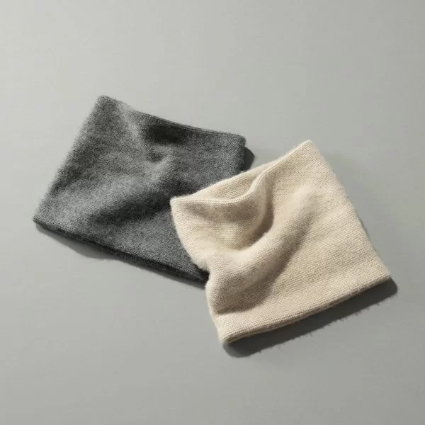 特殊な加工で少し毛足を出したふわっとした風合いと二重編みにしていることで抜群にあたたかいのが特徴。カシミヤ100%でなめらかさがあり、首に巻いたときのチクチク感のないのが魅力です。