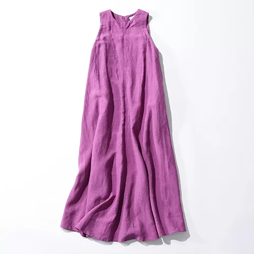 とにかくアガるワンピースが欲しい。そんな気持ちに応えてくれるのが華やかなカラーワンピース。さらっとした麻混素材、身体にまとわりつかないテントシルエットで夏も快適に着られます。