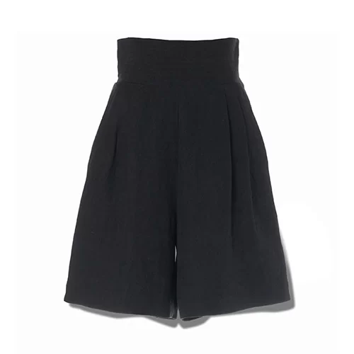 今シーズン注目のショートパンツが、シンメからも登場! 肌あたりの柔らかい上質なリネン素材で、シワを気にせず着られるのがうれしい。ボーイズっぽいシルエットながら、潔くハイウエストにしたデザインで女らしさもさりげなく演出。トップスをインにすると視線が上半身に集まってさらに脚長に見える。