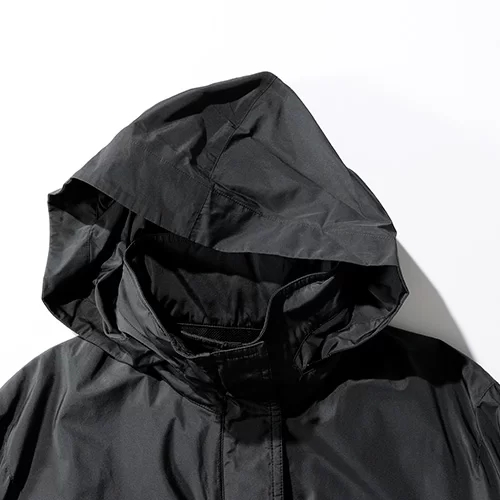 数々のトップメゾンからの信頼も厚い、イタリアの老舗メーカー・リモンタ社の高品質ポリエステルタフタを使用した高機能ブルゾン。形状記憶、糸の状態から撥水加工を施したハイテク生地でありながら、デザインはエレガント。ゆったりしたオーバーサイズのため寒さが増したら中にインナーダウンを仕込むこともできます。襟にはフードが内蔵されており突然の雨にも対応。腰のポケットにたたみ込むようにして収納すればパッカブルになるので、季節の変わり目にバッグインしておけば安心。