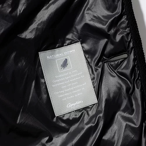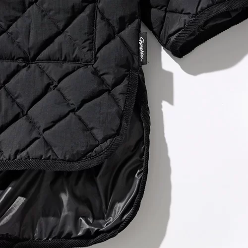 ドライタッチのタフタを使い、マットに仕上げたGYMPHLEXのキルティングコート。コーデュロイのパイピングもあいまってクラシカルな佇まいに。上質なダウンとフェザーを中に封じ込めているので、軽くて薄手ながらしっかり暖かいのが最大のポイント。前後差のある裾、その両脇にスリットを入れることであらゆるボトムスに合わせやすくした今どきのディテールで、着回し力が高い一着です。
