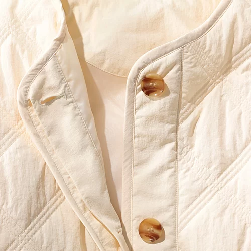 蓄熱中綿を使用した、ブラウスライクな薄軽キルティングコート