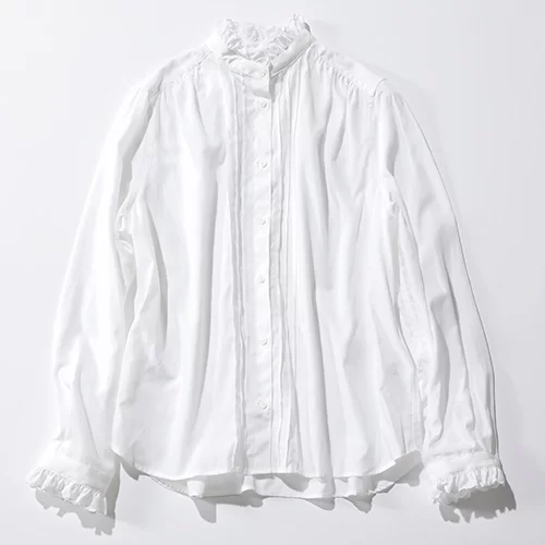 やや長めの袖リブが手首にクシュっとたまりニュアンスのある着こなしに。ブラウジングして、袖にボリュームを出して着るのも素敵。裾にも同じリブを採用し、丸みを帯びたコンパクトなシルエットを実現。