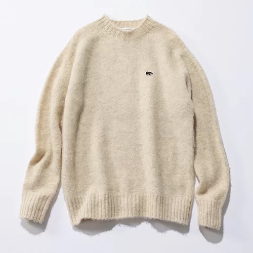 トラッド感あふれるワンポイントニット。シェットランドウールの糸を使用し、ホールガーメントで編み上げた本格派。つかず離れずの絶妙なサイズ感も、インにシャツを仕込んだり、アウターを重ねたりと使いやすい。ブランドのシグネチャーとなる小さなサイのワンポイントが効いている。
