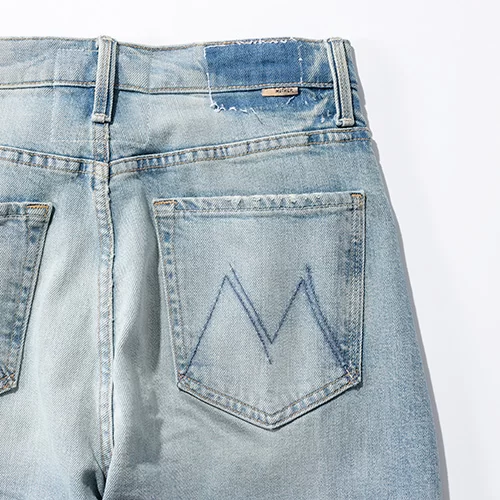 キュッと高めのウエストから、腰回りを緩やかなカーヴィーラインで包み込む女性らしいフォルムがトレンド感満載の新作デニム。ゆとりがありつつ、穿くと思いのほかすっきり見える絶妙なシルエットはさすがMOTHER。今投入して夏まで活躍するライトブルーカラーもまた推しポイント。太ももから膝にかけて縦長に入ったウォッシュの錯視効果で、細見えが叶うのもうれしい。適度にストレッチが効いた生地で穿き心地も◎!