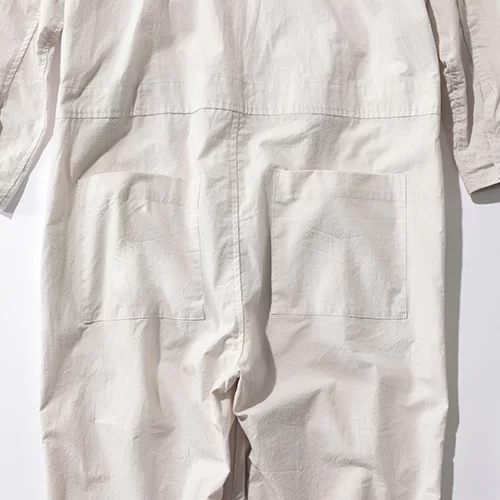イギリスで100年以上の歴史を誇るワークメーカー「Yarmo」が手掛ける、磨き抜かれたデザインのオールインワン。薄手のコットン生地ですっきりと仕上げ、ボタンを開けてINを覗かせても今っぽさ抜群。上部を脱いで袖部分を腰巻きで着るのもおすすめ。