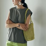 「体のラインを拾わないコクーンシルエット、シャープなラインのVネック、二の腕をカバーする袖など、計算しつくされたディテール&シルエットは感動的! どんな体型の人にも似合うと、大ヒットしたブラウスが、大人の肌をさりげなくトーンアップしてくれる夏らしいカラーで再登場しました。とろみのある素材はノーストレスの着心地です」(MD Koz)
