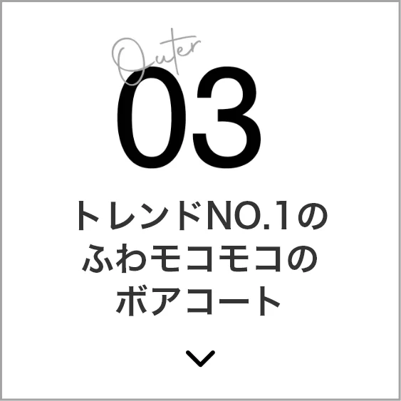 ますます人気も定着し、今シーズンも絶好調なボアタイプのコート。シンプルコーデにもこれ一枚で絵になるスタイルがつくれるので重宝している人も多いハズ。今シーズンは、ロング丈ではなくショート丈が注目に。ロングよりも扱いやすいのがポイント。
