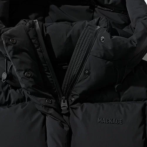 カナダ発の数あるダウンブランドの中で今注目されているブランド。美シルエットもさることながら、艶ナシ黒、ファスナーやロストなどの付属パーツをオールブラックでクールに統一したこだわりが洗練されています。