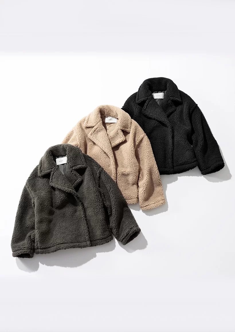もともとはジレだったボアを、袖アリで着丈短めに別注したのがこちらのコート。丈感も扱いやすいので、パンツにもワンピやスカートとも相性抜群です。色もコーデしやすい3色のラインナップです!