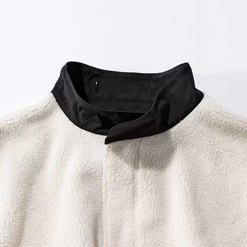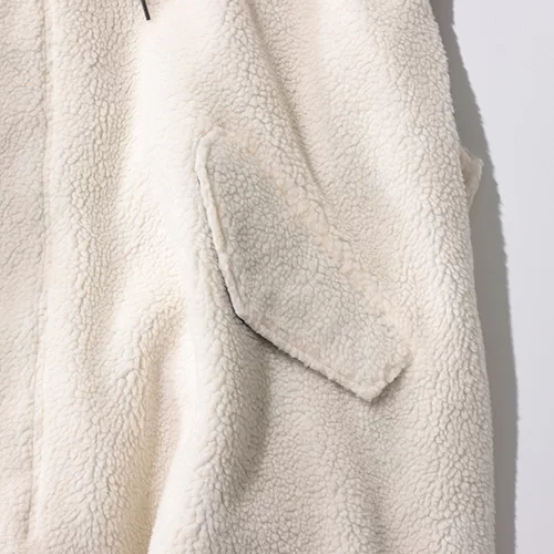 HAPPY PLUS STOREで色別注したボアベスト。モッズコートをベースにしたビッグシルエットが可愛い一枚です。顔周りに黒いフードがあることで小顔効果も! フードは取り外せるので着こなしの幅も広がります。