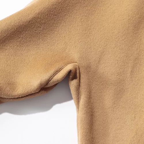 昨年あっという間に完売した、数点しか作れないという希少価値の高いカシミアウールコート。今シーズンはHAPPY PLUS STOEのために別注でキャメルを作ってもらいました。ウールカシミアの風合い、二重織のハリ感など、着るだけでリッチな表情をつくってくれます。