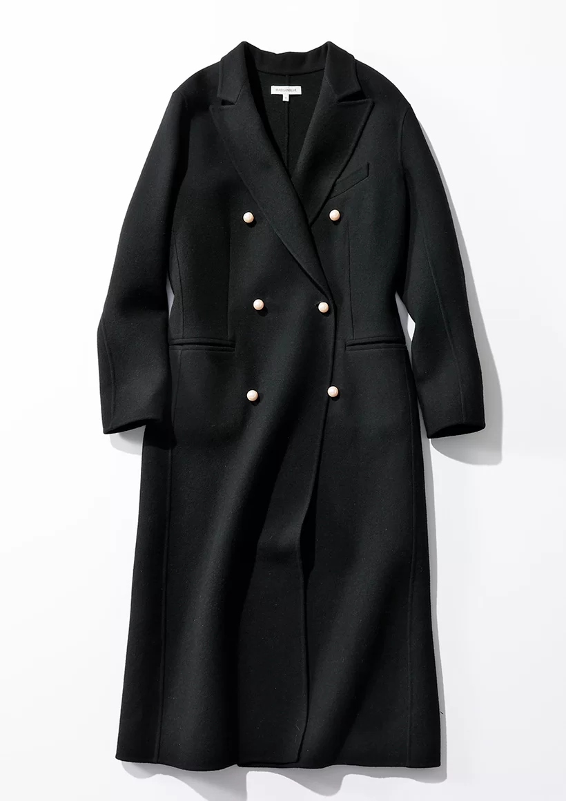 毎シーズン完売御礼の大人気のロングセラーコート。マニッシュなシルエットながらも、大きなパールボタンの程よい甘さが大人の乙女心に響きます。ごく薄い上質なメルトン素材だから軽やかで着やすいところも人気の秘密です。