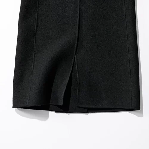 トップスにボリューム感があるので、ボトムスにはタイトスカートとパンプスでカッコよく。ここ数年カジュアル化していたので、久々にこういうスタイルも新鮮です! チャコールのコートと絶妙に合うカーキやベージュと合わせてニュアンスカラーでまとめるのがおしゃれ。