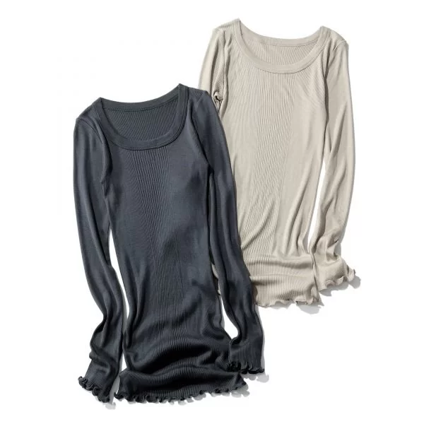 同素材のタンクトップの着心地が良すぎて、長袖バージョンも買い足しました。シャリッとしたシルク素材で春夏は清涼感があり涼しく、秋冬はアウターのインナーとしても活躍。このクオリティで11,000円で買えるのは絶対買い!