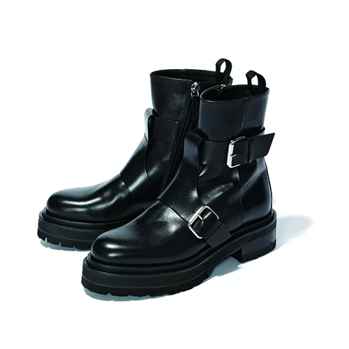 ネーミングは1953年公開の映画でブーツを履いていたマーロン・ブランドへのオマージュ。一見ゴツめなようで履くと予想以上にエレガント! しかも軽くて歩きやすく、厚底だからスタイルアップも叶う。スカートにもパンツにも合わせやすい、心もち長めのアンクル丈も絶妙。