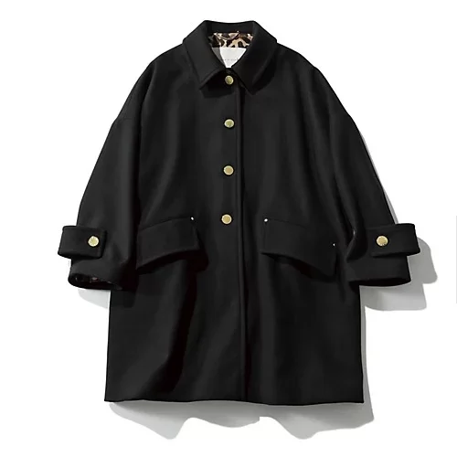 飽きのこないフォルムとボトムを選ばない着丈で、毎シーズン完売が続くAラインコート『ハンビー』。今年は、ゴールドボタン使いのデザインをセレクト。クラシックな品のよさに華やかなニュアンスが加わって、高感度な印象がアップ。