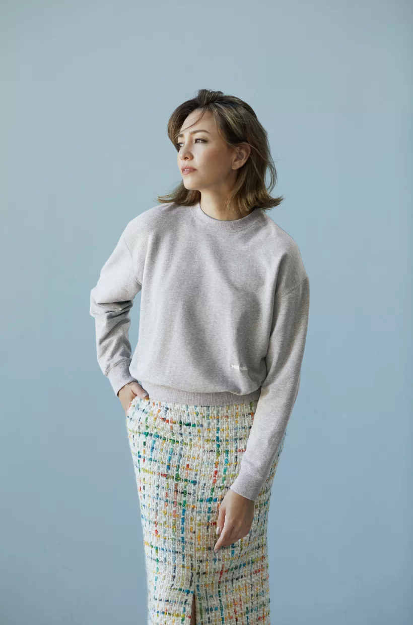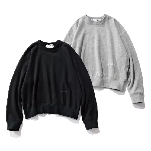 「ロンTよりも厚みがあり、一般的なスウェットよりも少し薄い絶妙な一枚ができました。季節をまたいで長く活躍してくれそう。首元は詰まったクルーネック、肩は少しドロップしたルーズ感がありつつ、着丈はやや短め丈でトレンド感あり!今季らしいロング丈やボリュームボトムと相性抜群です」(坪田さん)
