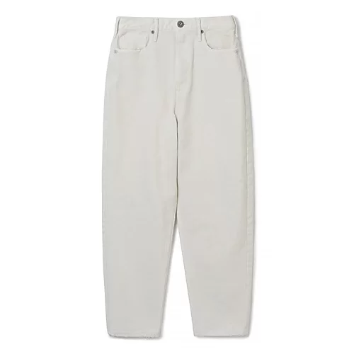 「トレンドが出やすいデニム。定番といえばストレートだったデニムにも“太めシルエット”の波が押し寄せています。“デニムをきれいめに”という想いが詰まったライター東原妙子さんの人気コラボシリーズ、第三段として発売された“THE FIG WIDE”は、太めが苦手な人でも抵抗なく履けると評判。シリーズ共通の腰からキュッと内側に入ったハイウエストで、裾に向かって丸みの出るイチジク型にゆとりを持たせた絶妙なワイドシルエット。従来のブラックはマットでしたが、このデニムは洗いをかけたような黒でコーデに軽さが出て合わせやすいんです」