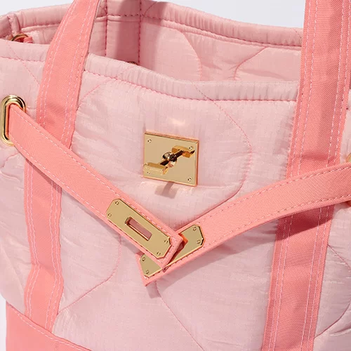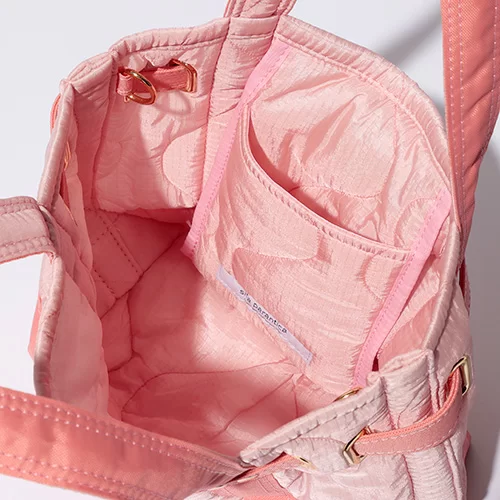 ミリタリーな雰囲気を残したヘチマ型のキルトステッチ生地にあえて可愛らしいピンク色を掛け合わせた甘辛なデザインが、大人のハズしバッグとしてぴったり。カジュアルなキルト地ながら品のあるベルトデザインの効果で、カジュアルシーンはもちろん、お仕事スタイルにも難なくハマります。