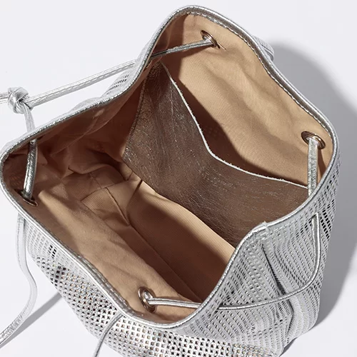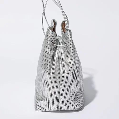 人気のバケツ型バッグが今季はレザーのメッシュ素材で登場!トレンド感のある色とデザインながら、しっかりと内袋が付いているので、外から中身が見える心配もなく、機能面でも安心。見た目以上に容量がしっかりあるのでお仕事バッグとしてもイチオシです。