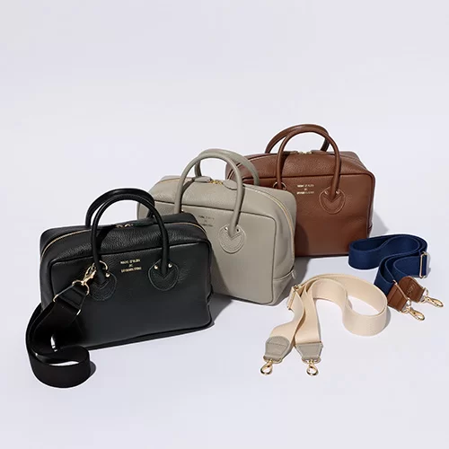 人気のボストンバッグのミニサイズをハピプラストアが完全別注したこちらのバッグは、小ぶりのサイズ感とシンプルなデザインが今の気分にぴったり!柔らかい革が使いやすく、マチがしっかりあるボックス型は見た目以上に容量がたくさん入るところも◎。取り外しできるストラップは斜めがけや肩掛けなど、スタイリングに合わせて選べます。