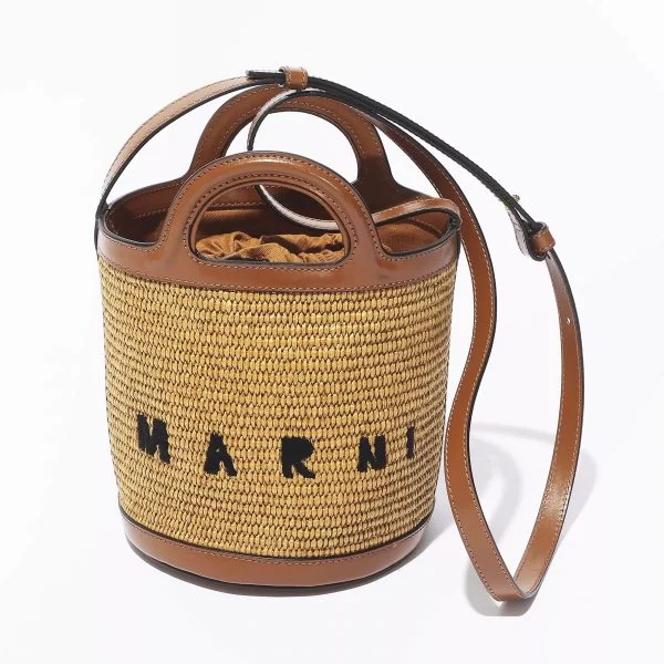 SACRA CO/LI WASHED TYPEWRITER スカート ¥42,900/ The Bagmati 【五明祐子さんコラボ】レザータッセル付きかごバッグ ¥12,100
