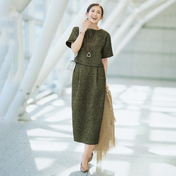 「白や黒やグレージュなどのワントーンも素敵ですが、きれい色のワントーンが好きです。ポイントは色が主張するから、服のデザインはベーシックなものを。きれい色を1点取り入れるとコントラストが付きすぎしまうことがあるけれど、例えばグリ―ンのスカートにグリーンの靴というように、色に濃淡をつけて服と小物で取り入れると手軽に着映えることができます。今年はグリーンやピンク、ブルー系のワントーンを楽しむ予定です」