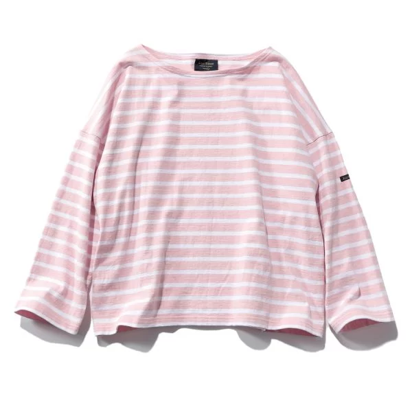 フランス生まれの老舗マリンブランド「ルミノア」。人気の『プチコパン』はオーバーサイズのドロップショルダーが旬を感じさせるデザイン。春の新色はボーダーTが苦手な人もトライしやすいフェミニンなローズピンク。着丈が短くバランスよく着られます。