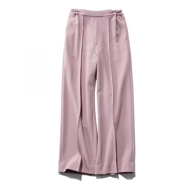 LEEマルシェ発のブランド「12closet」から、くすみピンクのワイドパンツが登場。ウエストはサイドと後ろがゴム仕様、生地にもストレッチが効いていて、とにかくはき心地が楽! フロントのセンタープレスは洗濯機で洗っても取れず美脚力も抜群。