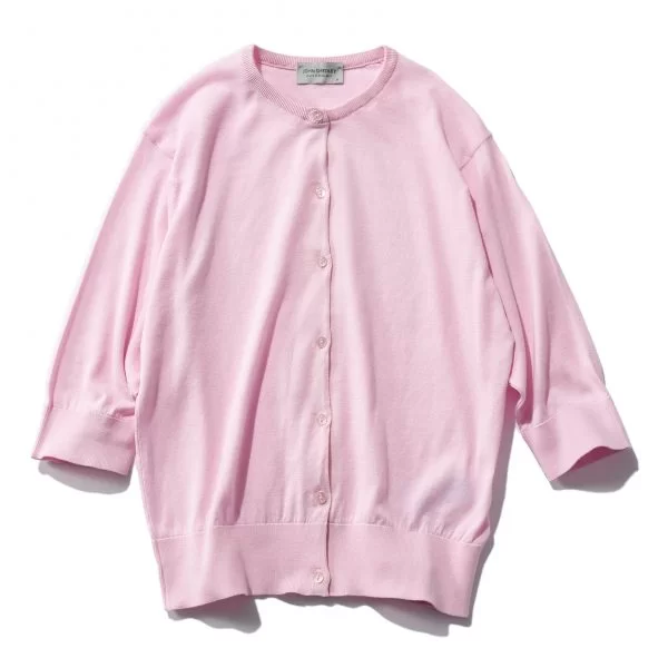 イギリスを代表する、英国王室御用達のニットブランド「ジョンスメドレー」。昨年ヒットした新定番の五分袖ニットの新作は優しげピンク。つかず離れずのシルエットと短め丈で体のラインをきれいに整えてくれる一着。春はふんわりスカートと合わせてエレガントに。
