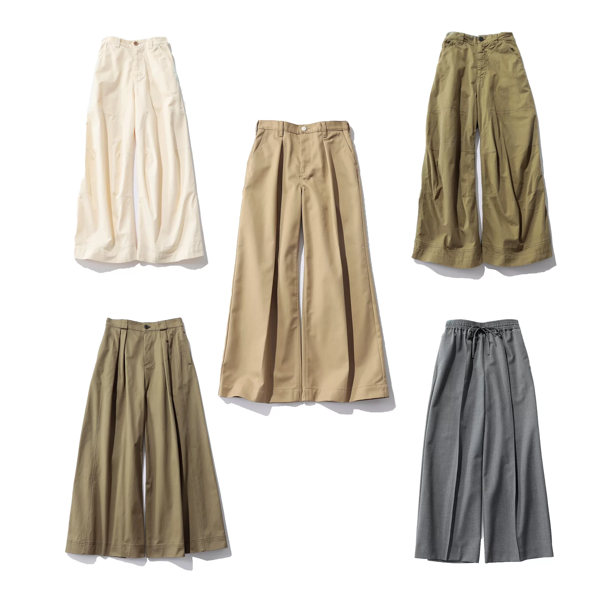ちょっと大袈裟なくらいのワイドシルエットが特徴的なパンツは、着こなしでトレンドのテイストを取り入れるとぐっとはきやすく。今季はサファリルックがトレンドとして来ているので、パンツ以外はサファリっぽい配色のアイテムを合わせると、一気に今年らしいスタイリングが完成!