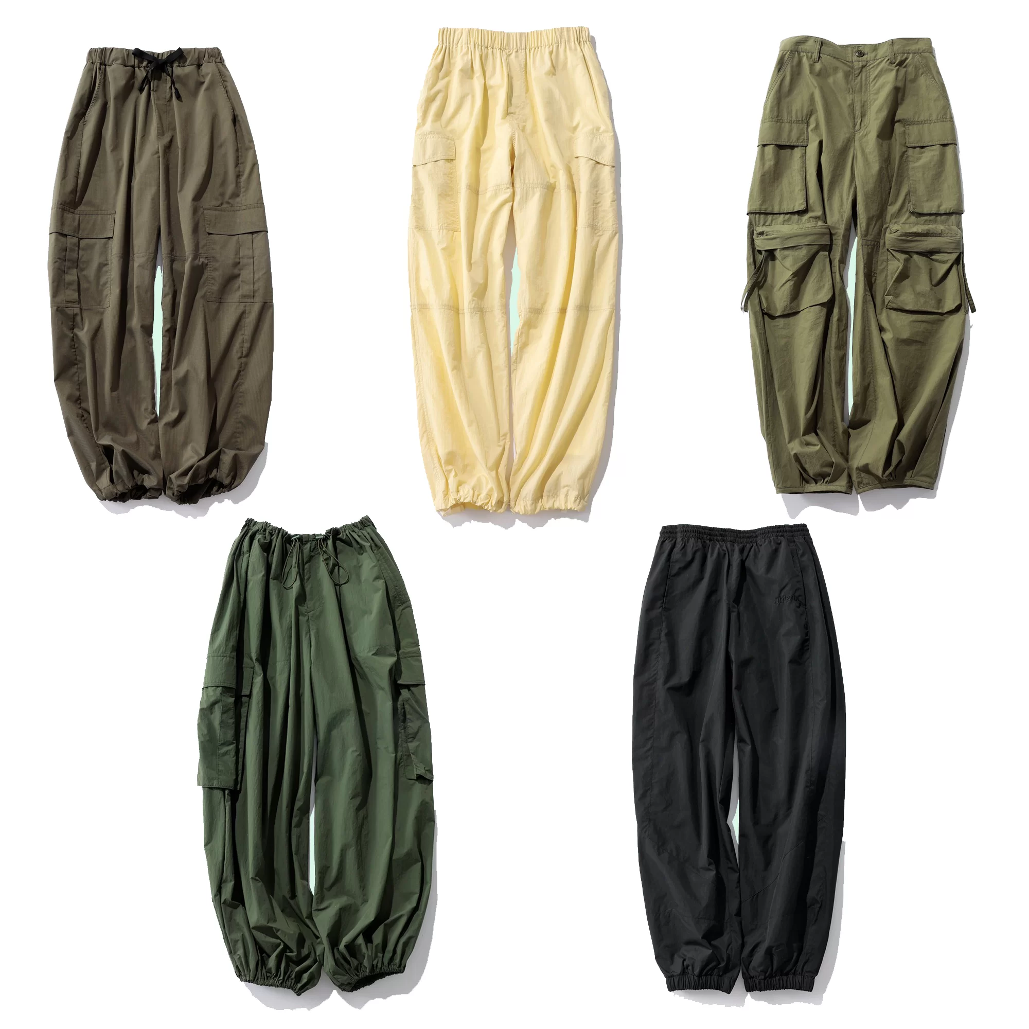 トレンドのカーブシルエットを取り入れて、たっぷりとギャザーを効かせたバルーンシルエットがキャッチーなカーゴパンツ。サイドポケットやウエストのドローコードのエッジが効いているので、ボリュームシルエットながらメリハリのある印象に。表はサラリとしたナイロン生地ながら、裏はコットンなので優しい肌あたりも嬉しいポイント。