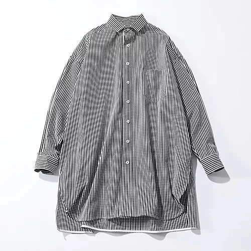 「メンズっぽく、ゆったりと着られるシャツが好きです。クローゼットには、肌に心地よいコットン素材の白、黒、ライトブルー、ダークブルーのシャツがたくさん。今の季節はTシャツの上に重ねたり、1枚をシックに着るのも好き。夏はショートパンツと合わせたり、ワンピースの上からはパサッとはおったり。シャツは一年中、愛用しています」