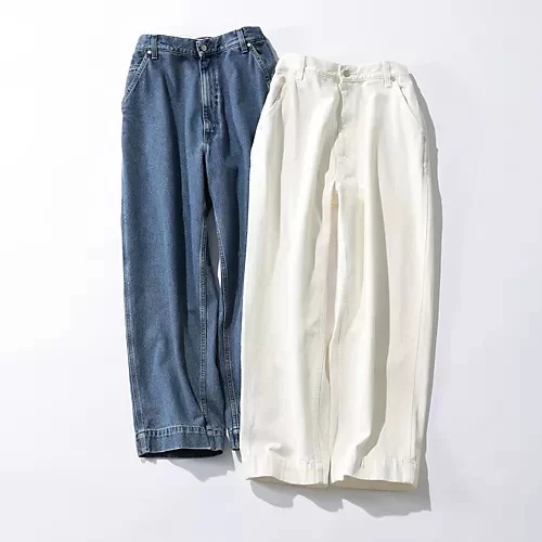 レッドカードの最旬シルエットは、ずばり“見た目だけ腰履き”。メンズのゆったりデニムはウエストが大きくて、という悩みを、ウエストをフィットさせて腰ではいた風のリラックス感が出せるワイドシルエットに。綿100%でも柔らかで軽量。きれいめな着こなしにピッタリです。