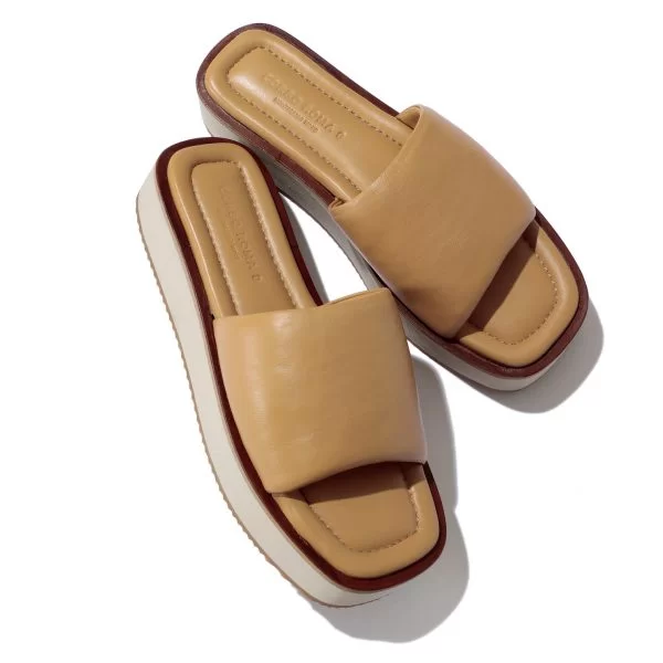 足に優しいフットベットタイプのフラットサンダル。アッパーにパンチングを施しているため、適度に肌が透ける仕掛けに。ヌーディだけれどカジュアルに楽しめるデザイン。