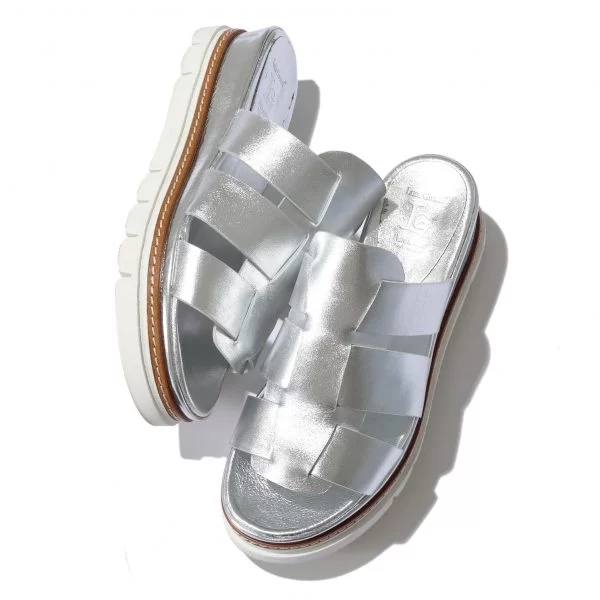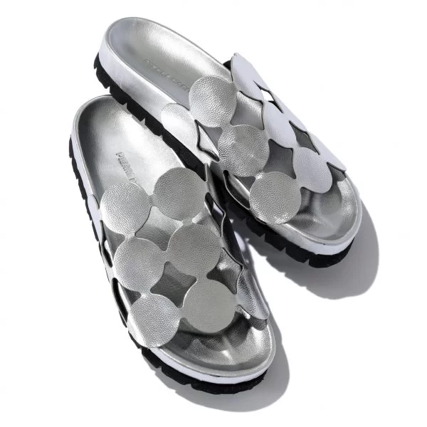 キュートなサークルモチーフをグラフィカルなカットワークで表現した「ビュル」からトレンド感満点のシルバーカラーがお目見え。2㎝という厚みのあるソールでクッション性もあり、履き心地抜群。いつもの着こなしをブラッシュアップしてくれます。