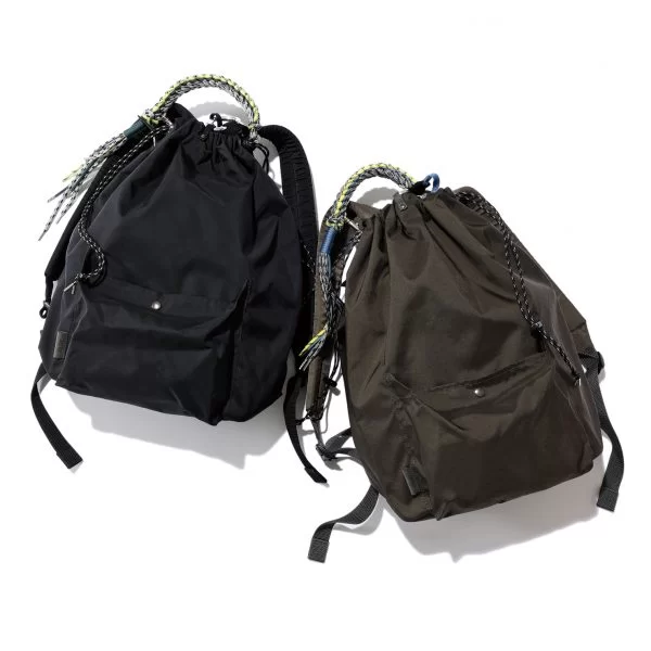 きゅっと口を絞る巾着フォルムにカラフルなハンドルをあしらったリュックサック。ナイロン素材なので軽く、内外のポケットや大きな底マチで収納力も抜群。大きめに開くサイドジッパーで物の出し入れもスムーズ。