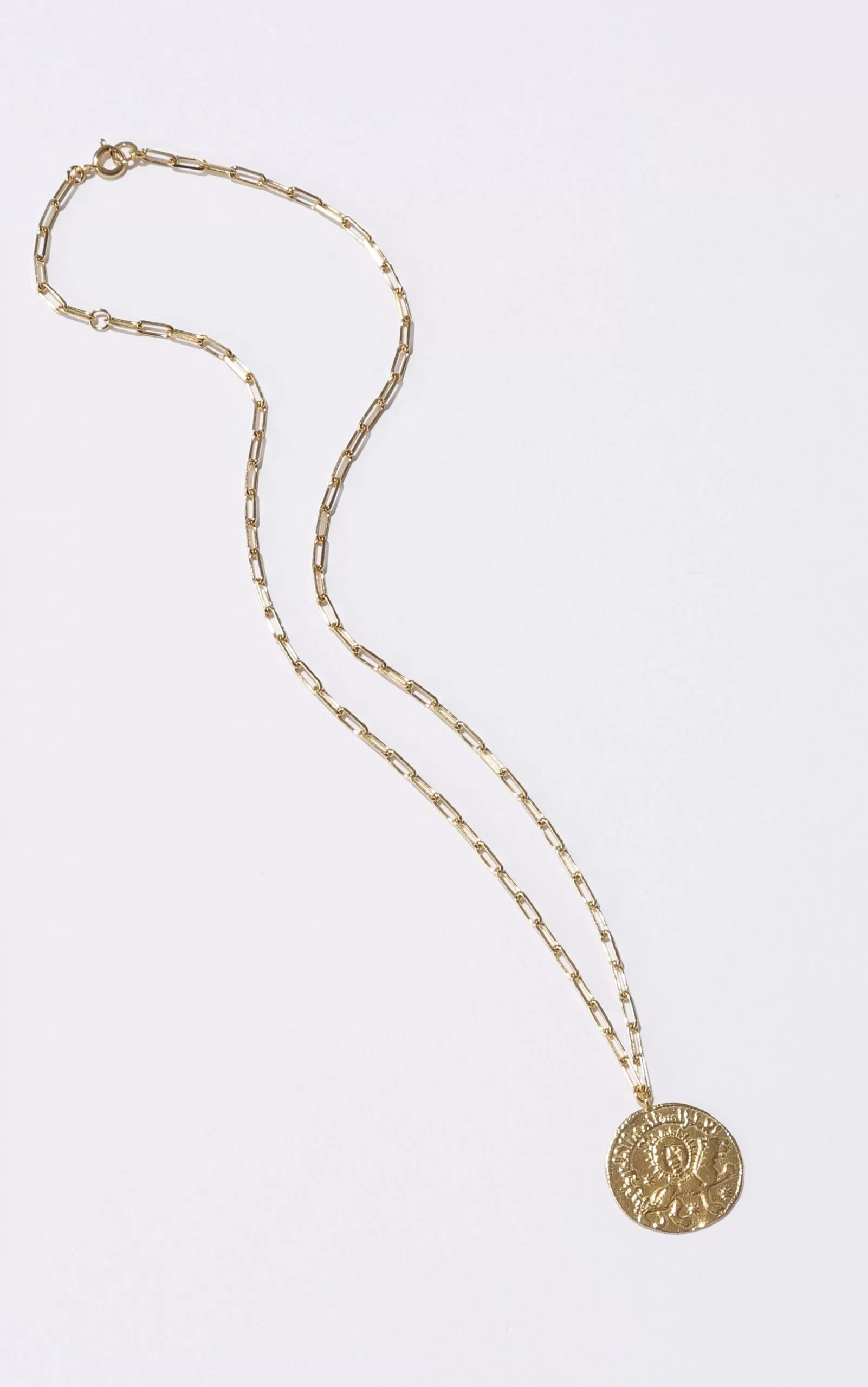 コインにはギリシャ神話の神々や王の肖像が刻印されて。華奢すぎないチェーンとの相性も◎。