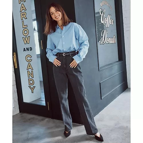 「そのときどきのトレンドや気分でさまざまなジーンズを履いてきたけれど、私にとってジーンズの原点はリーバイス501。いつでも戻れる1本があるから、旬のジーンズにもトライできるんです。今回、夢のようなデニムのコラボに参加させていただいて、カジュアルすぎないきれいめな1本を作りました。ジェーン・バーキンをイメージしたヴィンテージライクなほんのりフレアシルエットは、デニムを諦めかけている大人に履いてほしい!」
