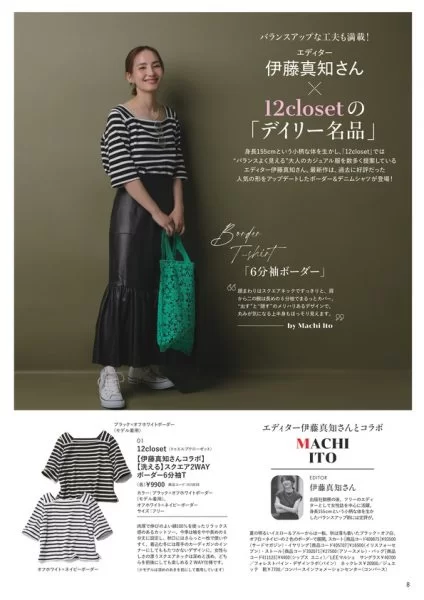 Collaboration Item #7伊藤真知×12closet スクエア2WAYボーダー6分袖T