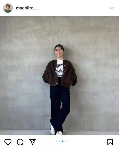 「余談ですが、自分のインスタを見返してみると、昨秋にもブラウンのブルゾンをばっちり着ていました。しかも合わせたボトムは11月号の誌面と同じく、12closetとのコラボニットパンツ。昨年はブラウン×ネイビー、今年は黒×黒と配色こそ違えど、やっぱり好きな組み合わせは変わらないようです!(笑)」