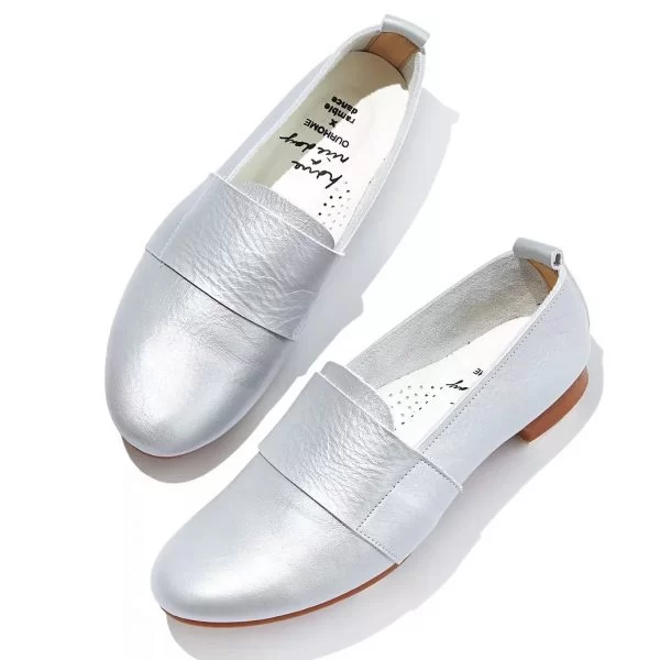 スリムでスッキリしたデザインに進化しつつ、履き心地はゆったりしていてコンフォータブル。シンプル&シックな印象なので、コーディネートを選ばず活躍してくれます。色は、明るく爽やかで春夏にぴったりのホワイトと、オーソドックスできちんとした場所にも安心のブラック。足になじみやすい柔らかな革を使っているので、長い時間歩いたり何度も脱ぎ履きしたりする際もストレスフリー!ヒールの高さ1.4cm。