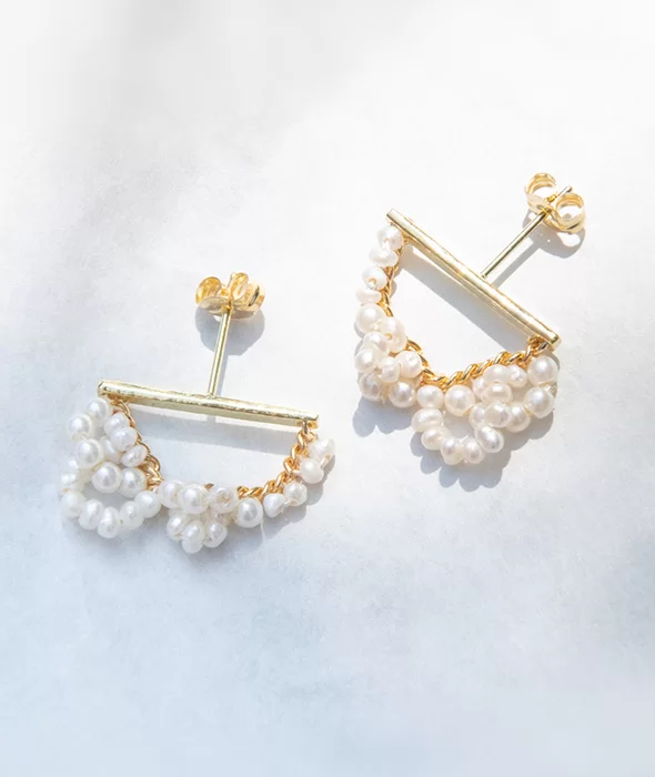 淡水パールを連ねたピアス
