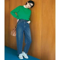 こなれたストーンウォッシュデニムと愛らしいパールボタンのコントラストが絶妙で、1シーズンに何度も完売するほどの人気! 今季はお客様からの声を取り入れ、袖口のボタンも華やぎのあるパールにアレンジ。さらに、ロールアップ用のタブをなくして洗練された表情になるよう別注しました。バランスが取りやすい前後差のある裾も特長です。
