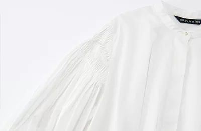 人気のピンタックシリーズからパフスリーブシャツをセレクト。バンドカラーのスッキリとした首元とボリュームのある袖が、着こなしにメリハリを与えてくれます。肩下には繊細なピンタック入り。