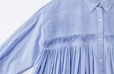 胸元のピンタックとふんわりシルエットで
