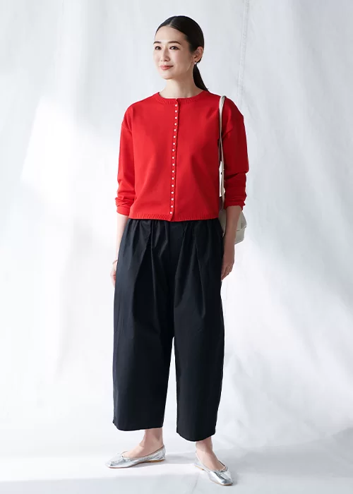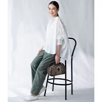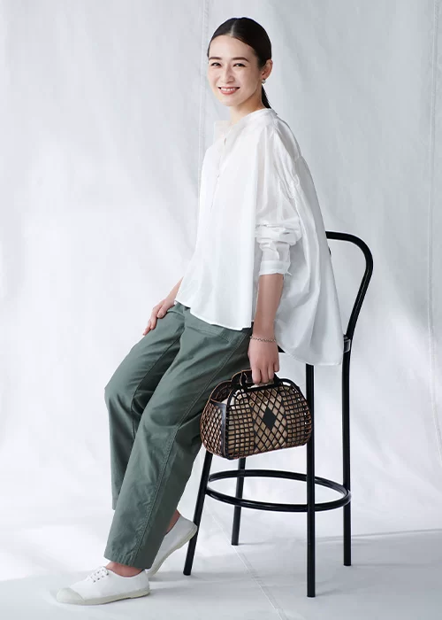 パンツ¥14,300(12closet)・バッグ¥56,100(Aeta)・靴¥7,150(ベンシモン)/LEEマルシェ ピアス・ブレスレット/スタイリスト私物