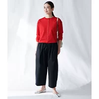 ナチュラルな風合いのレーヨンリネン地は通気性が良く、肌触りも滑らかで心地よく過ごせます。ウエストはイージーな穿き心地のゴム仕様に加え、中紐付き。